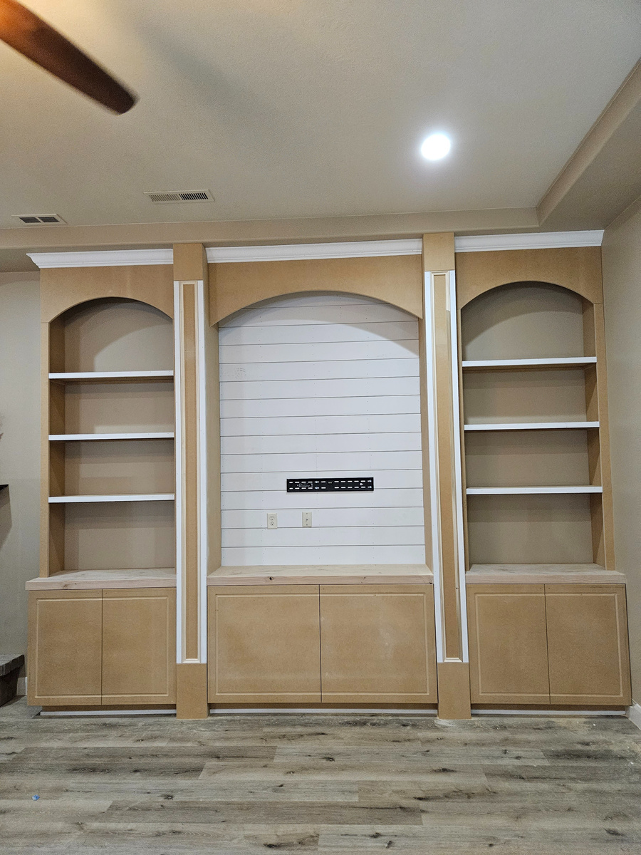 My husband and I contacted Jince about an entertainment center we wanted built. He gave us exactly what we wanted and more! He was able to incorporate our existing fireplace and blend it with a masterpiece of an entertainment center. We couldn’t love it more!